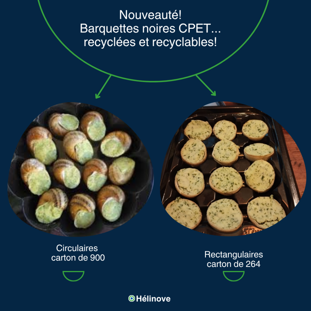 – Les BARQUETTES NOIRES CPET, pour présenter vos escargots et Crouski’s d’une manière plus esthétique et écologique.