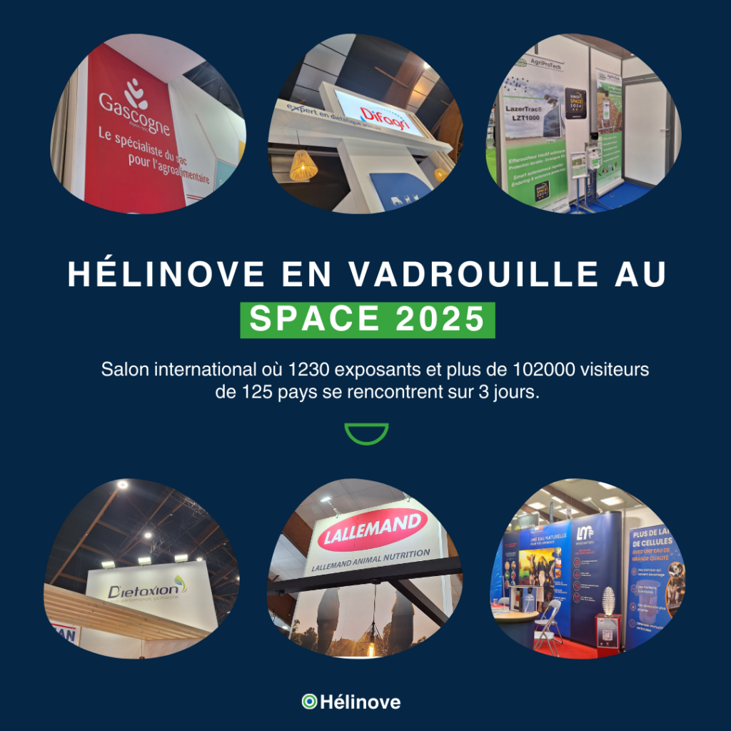 HÉLINOVE se déplace sur de nombreux salons professionnels : le SIVAL à Angers, le SPACE à Rennes, le SOMMET de l’ÉLEVAGE à Clermont Ferrand, la Foire du Chrono aux Herbiers, le SERBOTEL à Nantes, le TECH’ ÉLEVAGE à La Roche Sur Yon.