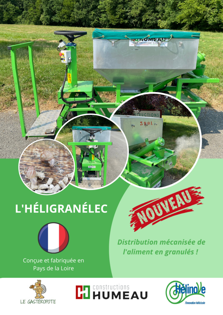 - Machine conçue et adaptée, afin d’optimiser la distribution mécanisée des aliments en granulés pour escargots.